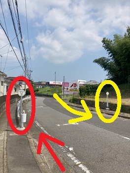 黄色いバス停で降り、ゆるい坂を上がり右に進んで下さい。