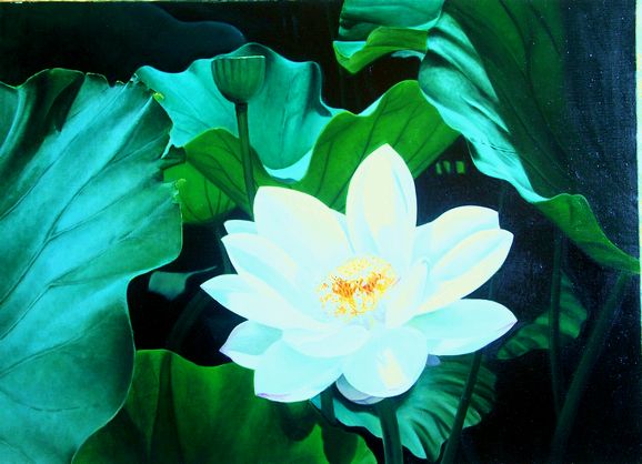 左の作品は、散歩中あまりに蓮の花が綺麗でしたので描いてみました。