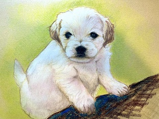 生徒さん宅の「ワンくん」です。家族の一員を作品に!目が可愛いですね。(^_^)