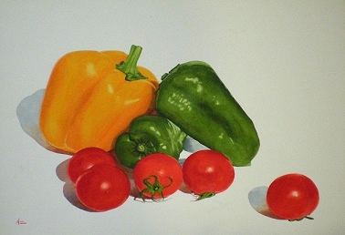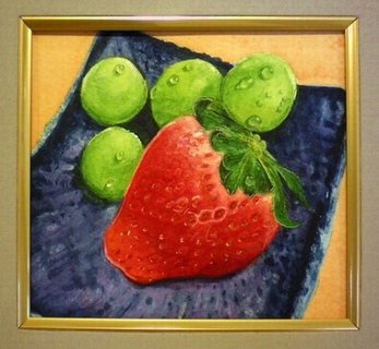 ●下の作品は、写実的に描いてみました。赤い果物を描きたかったのですが無かったので近くにあったトマトにしました。