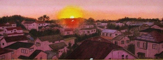53 朝日と夕日を同時に描く発想、新鮮です。楽しいですねー(^-^)