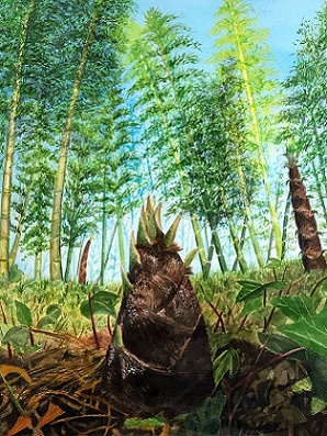 62 竹の子をダイナミックに表現されましね〜、後方の竹林の表現も竹の子を際立たせています。素晴らしい。