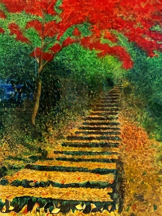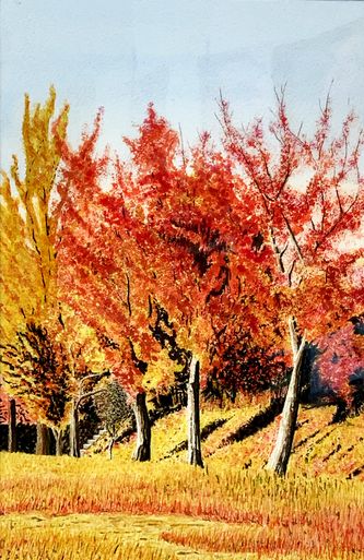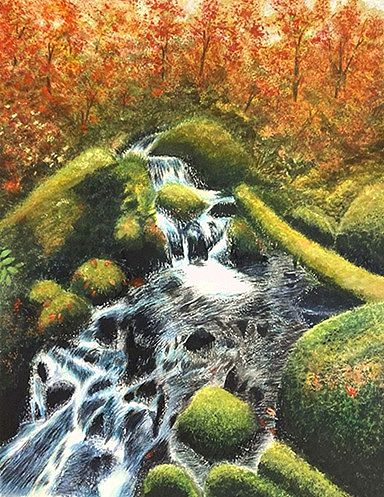69 紅葉・水の流れ・岩の苔の表現、苦労されましたが素晴らしい作品になりました。静けさの中に水の音が響いていますよ。(^-^)
