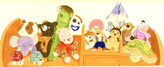 82 お孫さんの「ぬいぐるみ」大集合、おじいちゃんの愛情一杯の作品ですね(^_^)
